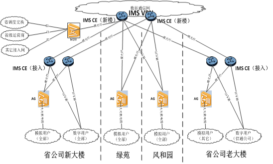 Ø 在綠苑、風和園的弱電機房新配置接入網關AG,通過裸光纖遠傳接入省公司的IMS平臺。